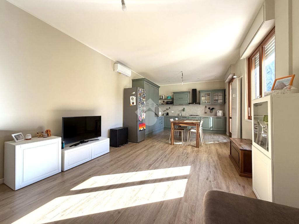 Ingresso sul soggiorno con cucina openspace in affaccio sul balcone.