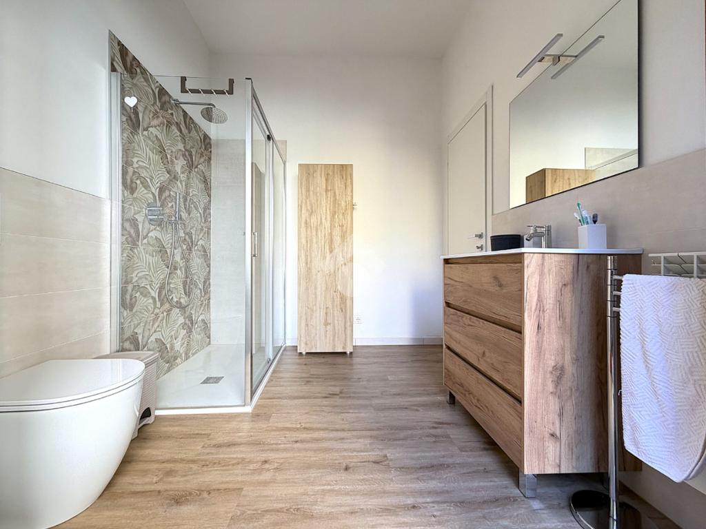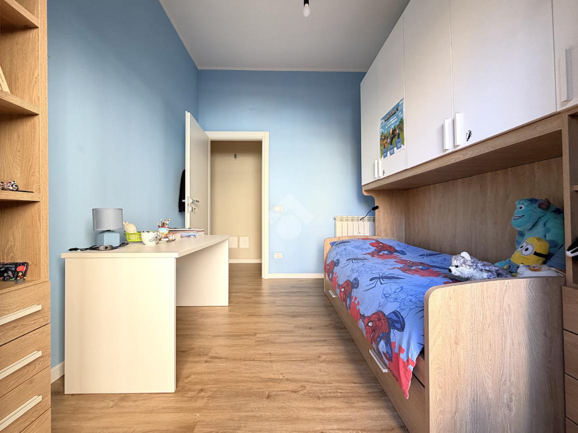 Camera da letto matrimoniale con bagno privato con doccia e portafinestra in affaccio sul balcone, due camere da letto singole ognuna in affaccio sul balcone, secondo bagno finestrato con doccia, oltre ad una comoda lavanderia.
